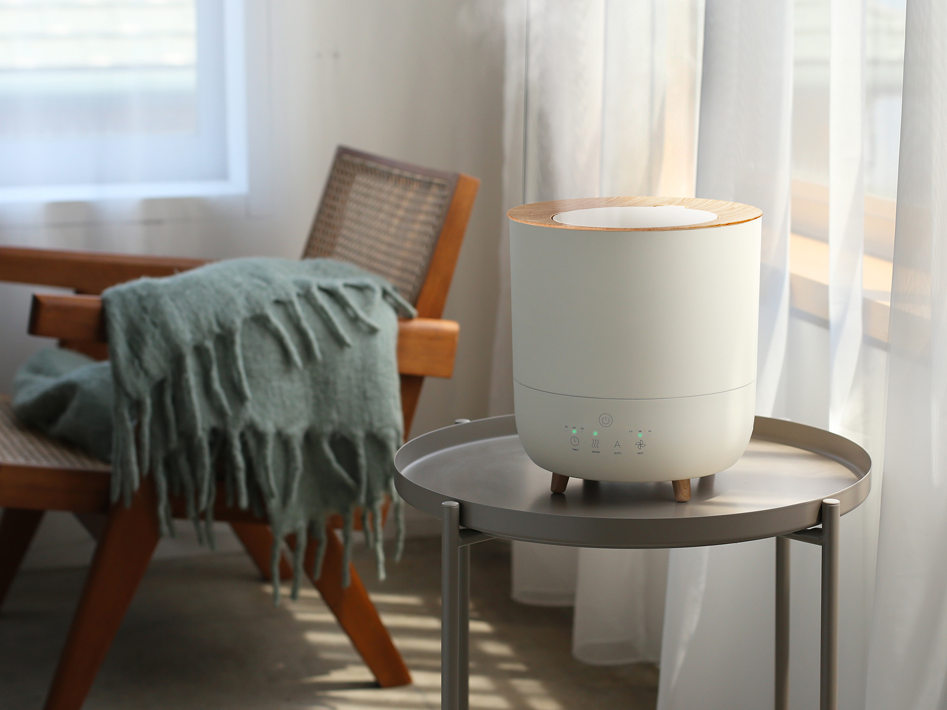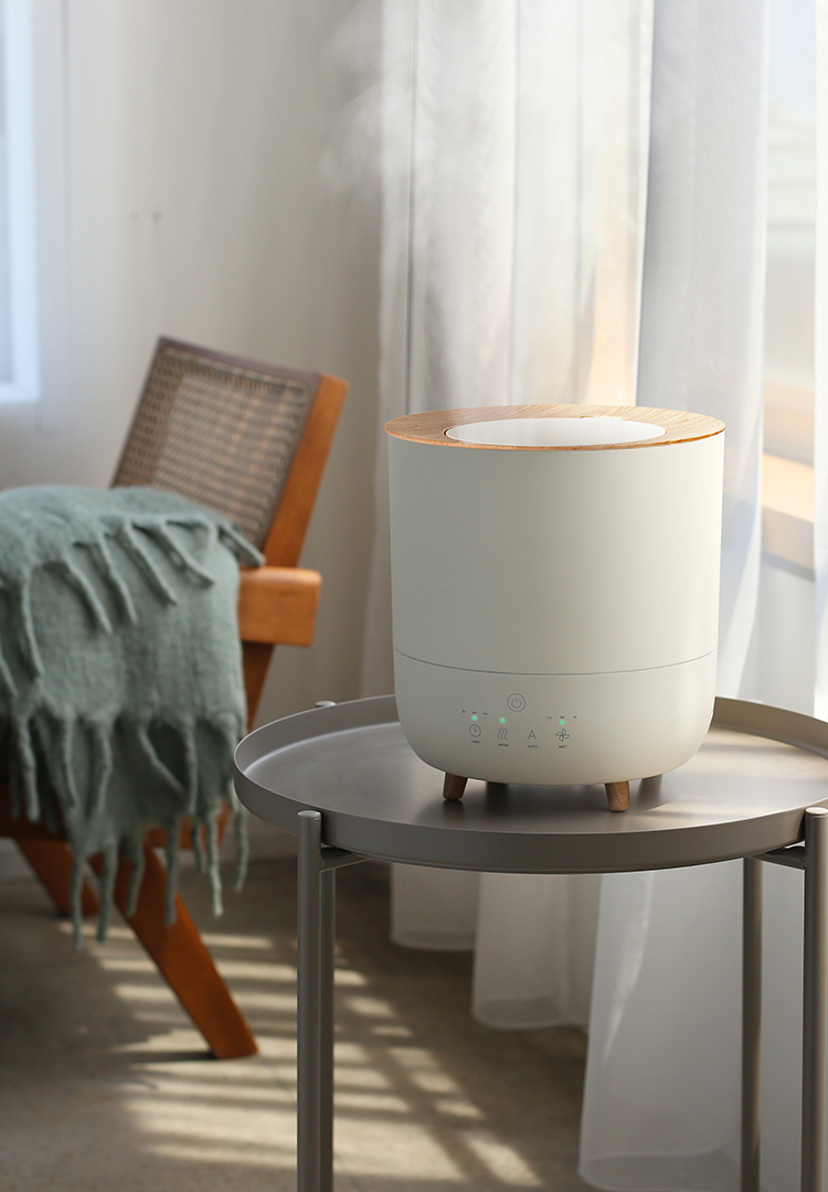 オブジェのような佇まいが美しい木目調ハイブリッド加湿器