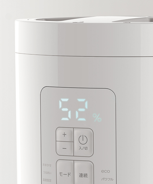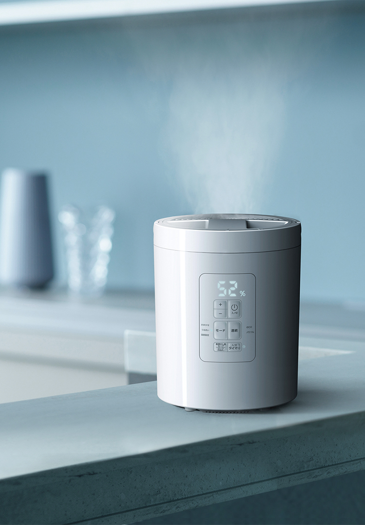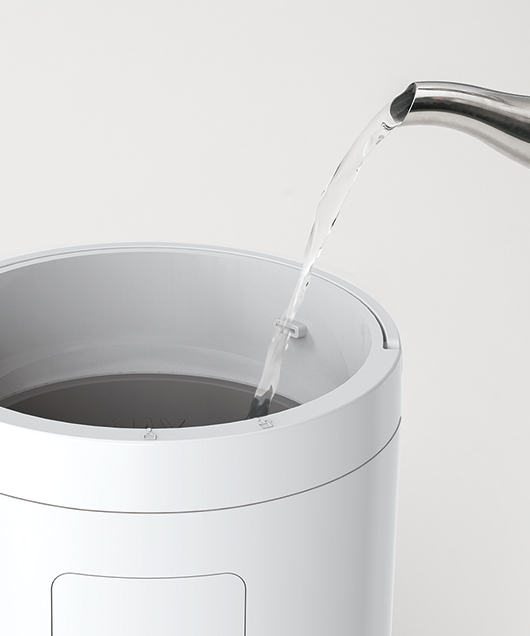 多機能スチーム加湿器の機能や構造をそのままに、扱いやすいコンパクトタイプを展開。タンク内の水を直接強力なヒーターで沸騰させるので、お部屋の温度を下げずに潤いを届けます。沸騰した清潔な蒸気なので、雑菌の繁殖を抑え衛生的。操作部にはLEDディスプレイを搭載しており、湿度設定やタイマーの設定時間も一目で確認可能。チャイルドロック、マグネットプラグ、空焚き防止機能、本体が倒れても水が漏れにくい構造など、安全設計に配慮したユニバーサルデザインです。