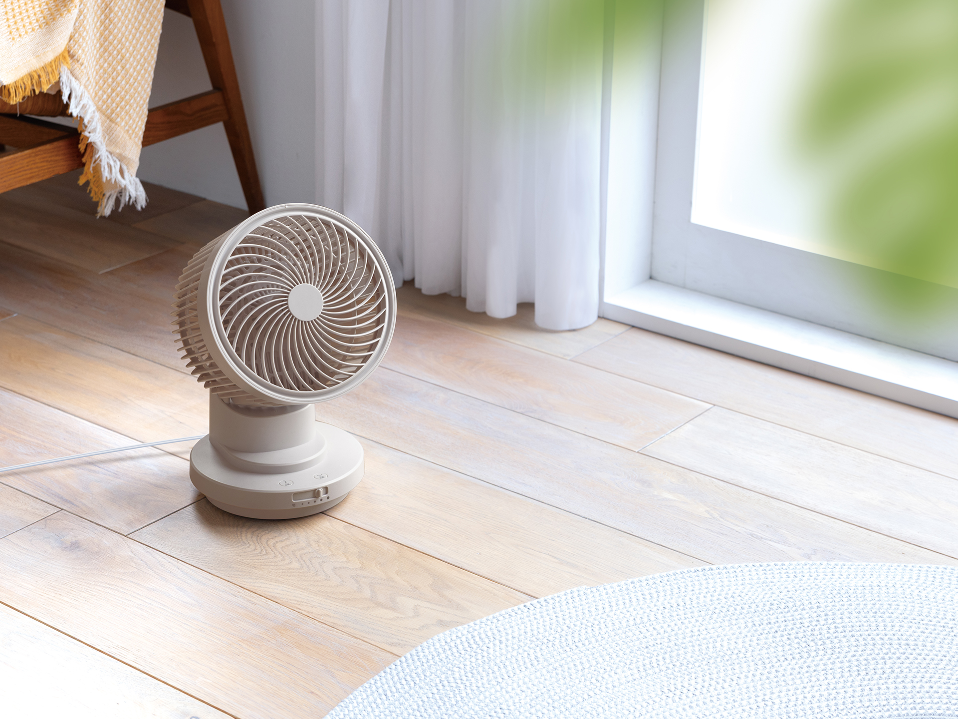 スライドスイッチで風量を微風からパワフル強風まで無段階に調整できるターボサーキュレーター。シンプル設計なので、複雑な操作が苦手な方でも直感的に操作することができます。羽根の形状最適化とDCモーターの採用により、従来機種比約20%の風速向上を実現し、28畳まで対応する大風量を可能にしました。上下・左右自動首振りを組み合わせた立体送風で、効率よく空気を循環。シンプルな操作性と頼れるパワーで、季節を問わず快適な空間づくりに活躍します。