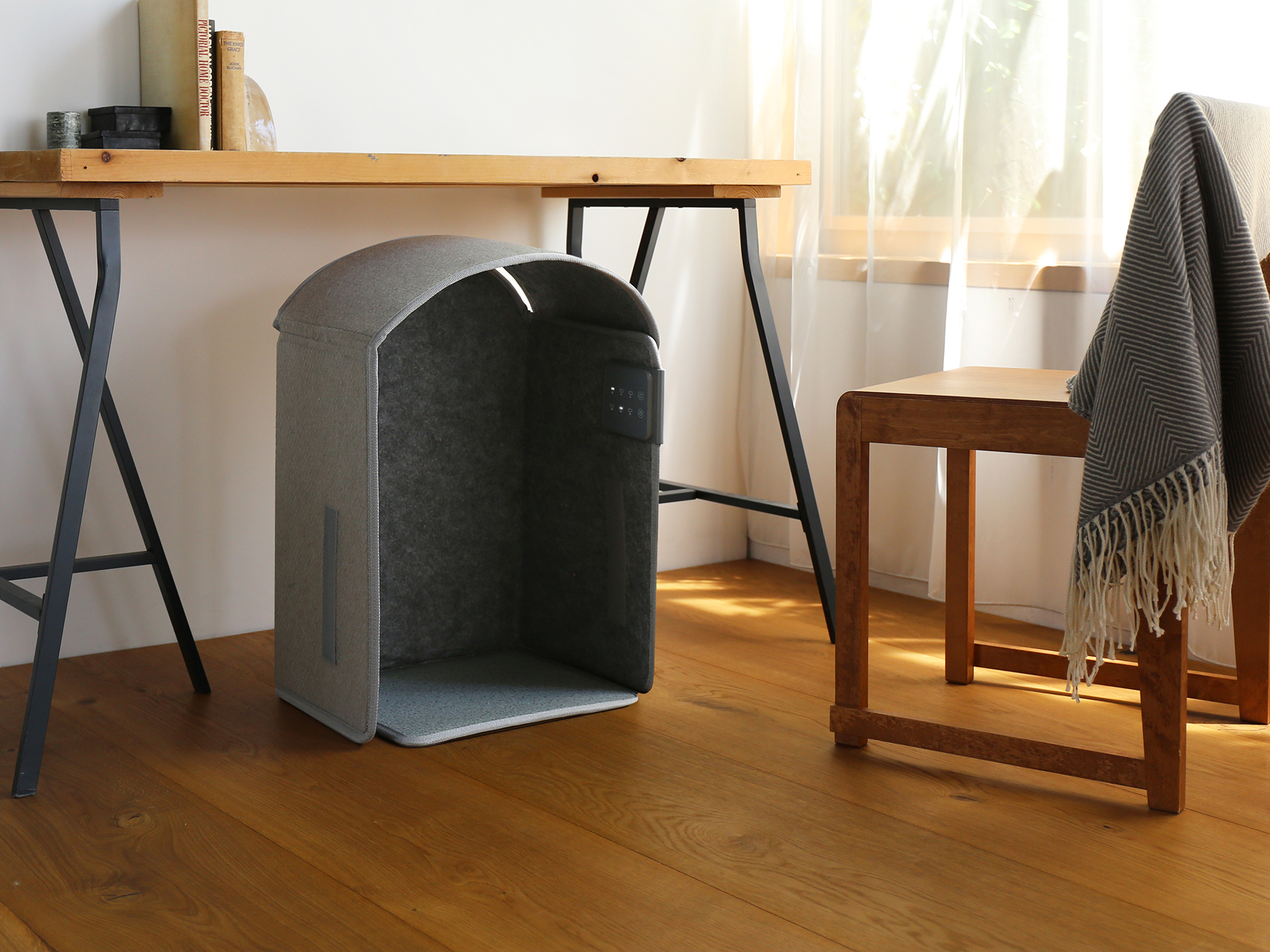 足をすっぽり収められる、パネルタイプのフットウォーマー。5面すべてが発熱する設計で、冷えやすい足先からひざ下までをしっかり包み込みます。薄型の折りたたみ構造で、使わないときはコンパクトに収納可能。軽量設計で持ち運びもスムーズです。操作パネルからは、弱・中・強の3段階温度設定と2・4・6時間の自動オフタイマーをそれぞれ選択できます。電源を入れるとすぐに、じんわりとやさしいぬくもりが足元全体に広がります。リビングや書斎のデスク下など、冬の足元を心地よくサポートする一台です。